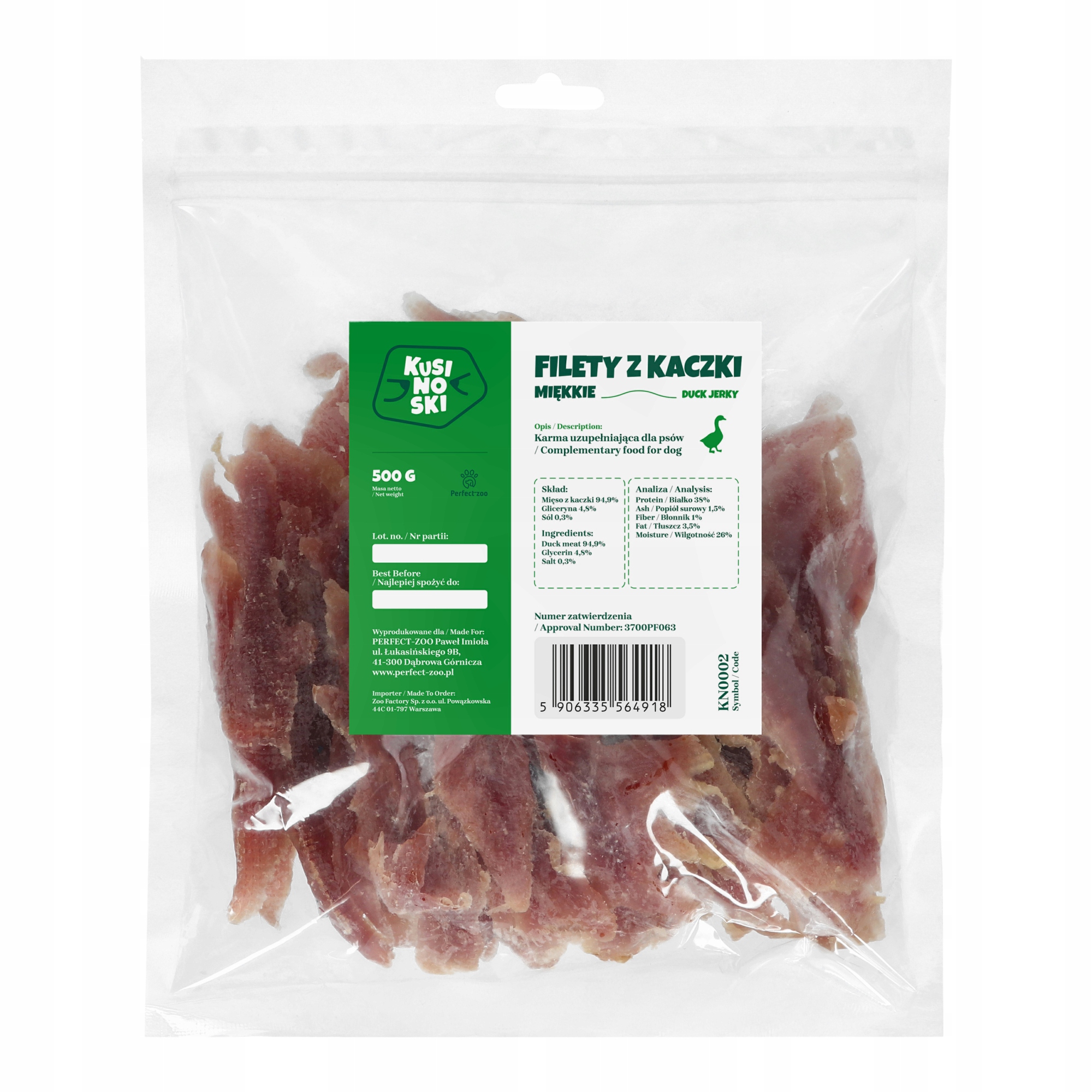 Oferujemy bardzo wyjątkowy produkt – Kusinoski Filet z kaczki miękki o wadze 500g, który nie zawiera żadnych sztucznych dodatków chemicznych, gwarantując 100% naturalność.