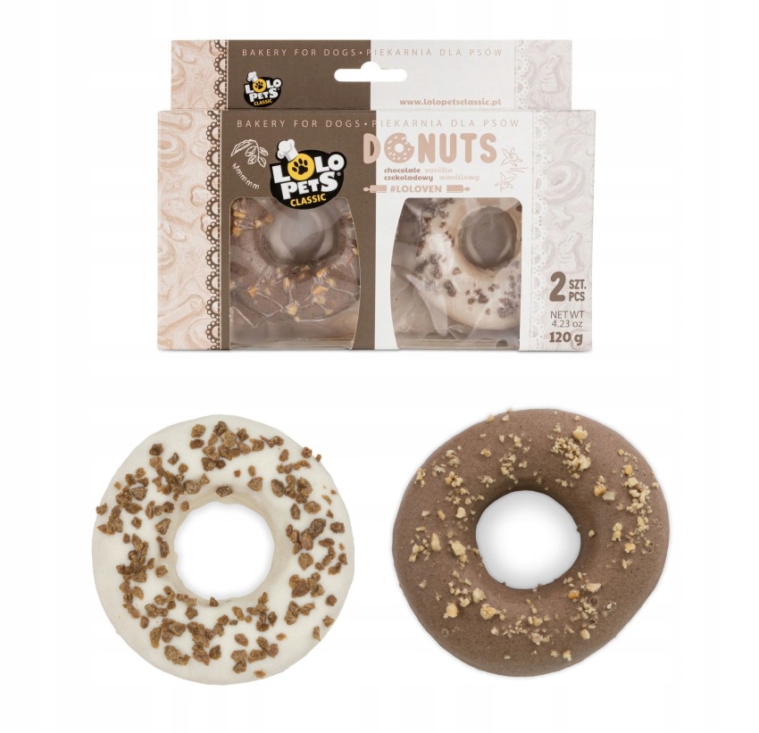 LOLO PETS DONUTS PĄCZKI CZEKOLADOWY WANILIOWY PRZYSMAK DLA PSA 2szt. 120g