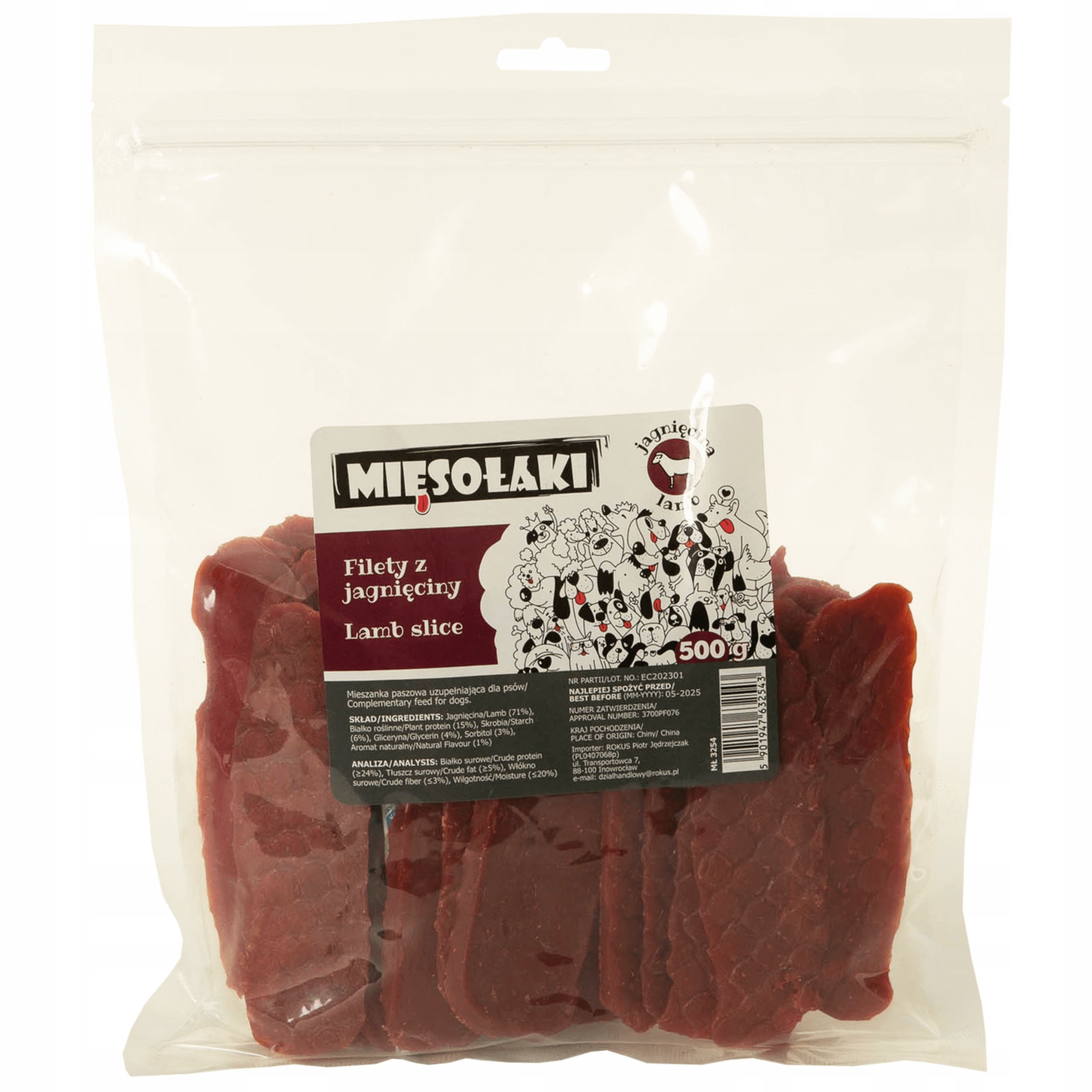 MIĘSOŁAKI FILETY Z JAGNIĘCINY PRZYSMAKI DLA PSA 500g