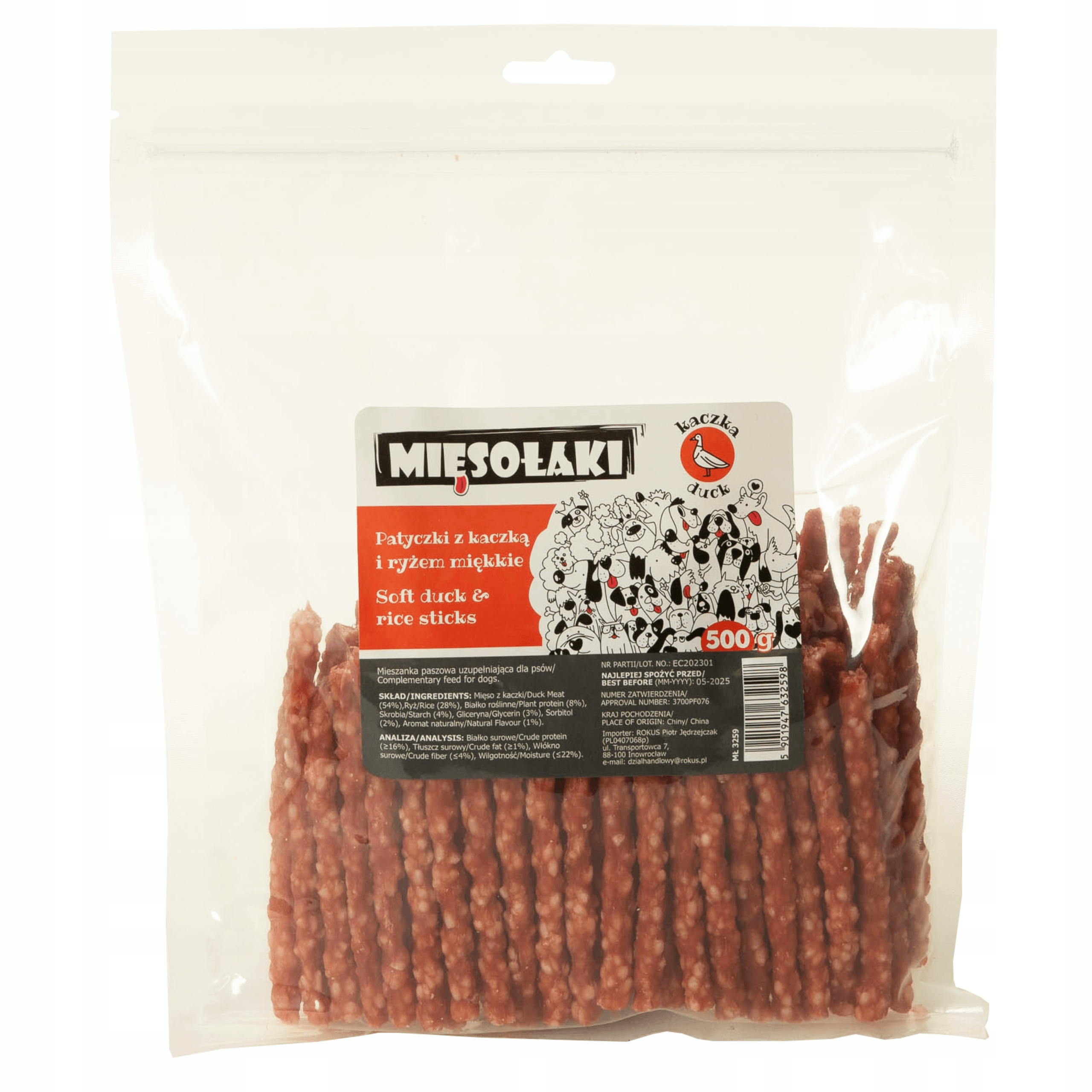 MIĘSOŁAKI PATYCZKI Z KACZKĄ I RYŻEM MIĘKKIE 500g