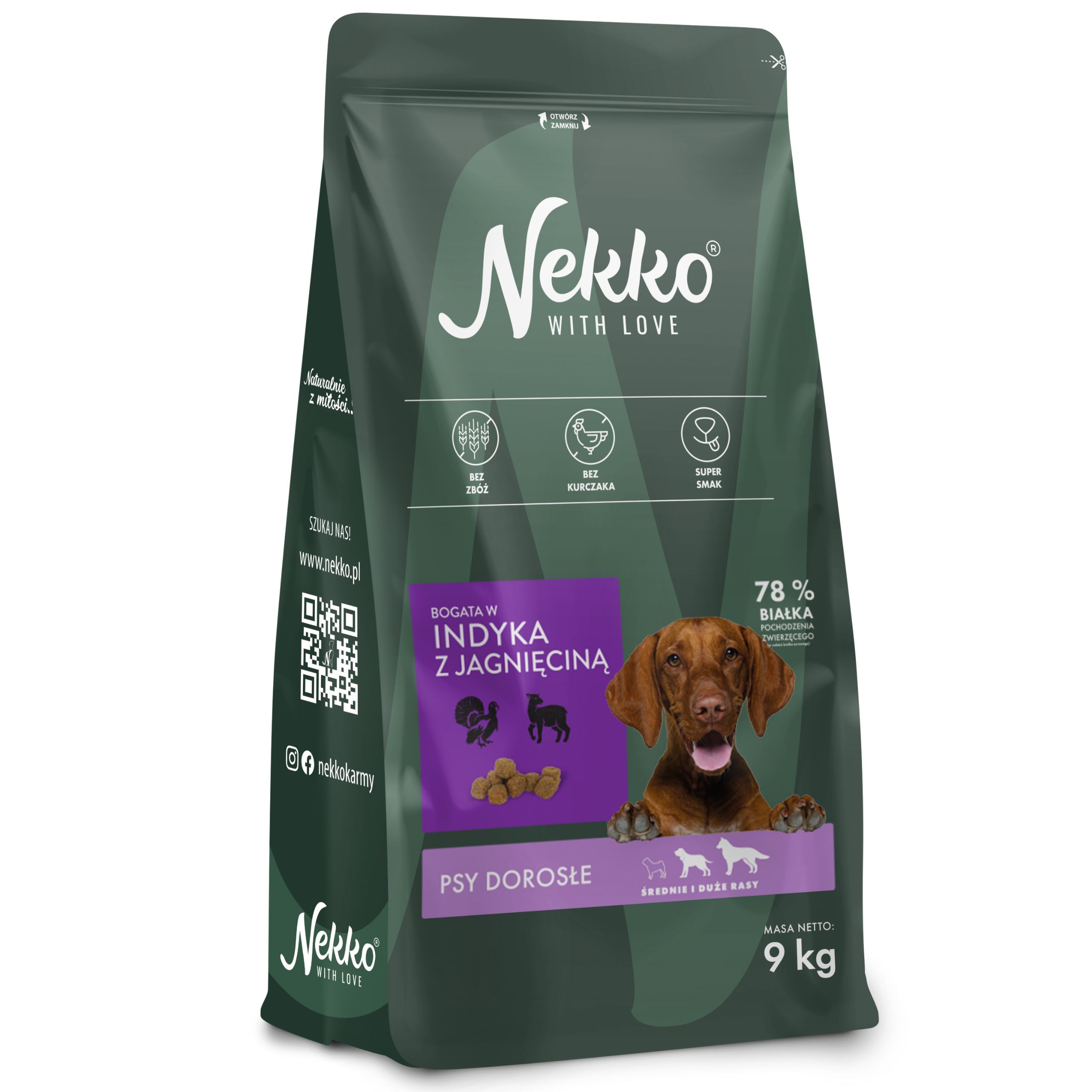 NEKKO SUCHA KARMA GF PSY DOROSŁE ŚREDNIE I DUŻE RASY INDYK/JAGNIĘCINA 9kg