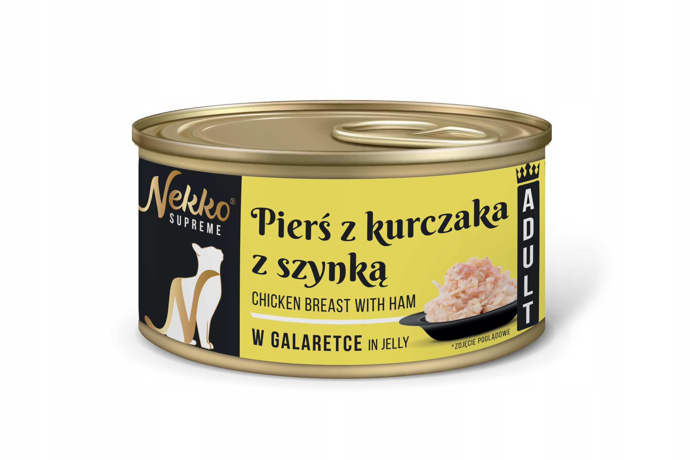 NEKKO SUPREME ADULT PIERŚ Z KURCZAKA Z SZYNKĄ W GALARETCE DLA KOTÓW 80g