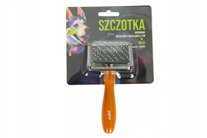 Delikatne szpilki wyczesują martwy włos/podszerstek, oczyszczając sierść z zanieczyszczeń i nadając jej połysk. Kulki na końcach szpilek chronią skórę zwierzęcia przed podrażnieniami.