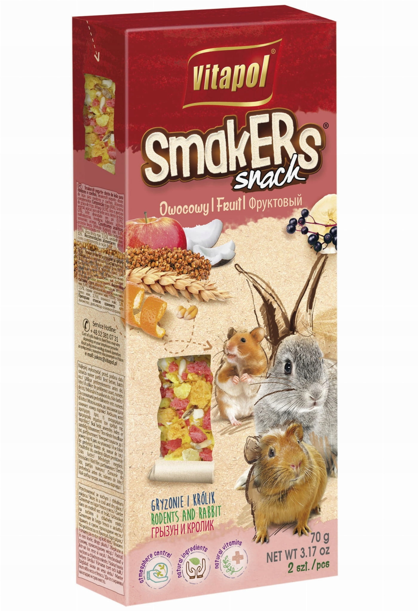VITAPOL SMAKERS SNACK KOLBY OWOCEOWE DLA GRYZONI I KRÓLIKÓW 2szt. 90g
